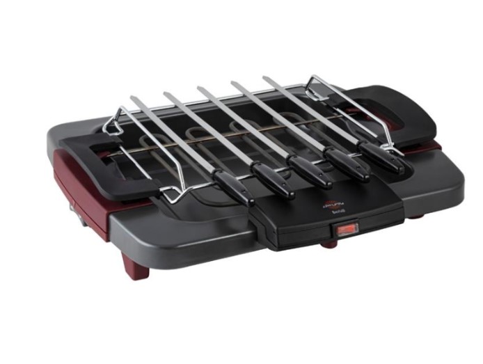 - مجهز به سینی دو رو تفلون با کیفیت مناسب جهت گریل و سرخ کردن مواد غذایی-دارای درب شیشه ای از جنس سکوریت مقاوم در برابر حرارت با دستگیره نسوز جهت کاهش مصرف انرژی و پختمناسب مواد غذایی-قابلیت تنظیم ارتفاع سینی و سیخ ها در زمان پخت-امکان کباب کردن مواد غذایی بصورت جوجه، چنجه ،ماهی، گوجه و ....-دارای 5 عدد سیخ کباب به جنس استیل و مجهز به دستگیره مقاوم در برابر حرارت به منظور ایمنی و سهولت استفاده میباشد